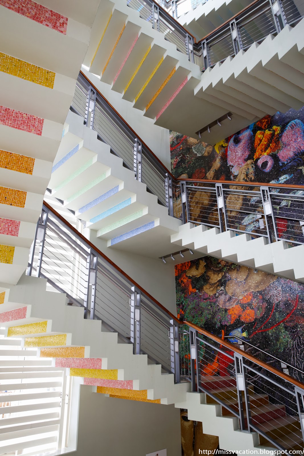 We went up to the observation tower, the floor was wet, really wet that I was afraid that I might slip! The stairs up were quite colorful and I really enjoyed the mosaic tile wall, pretty and creative wasn't it?